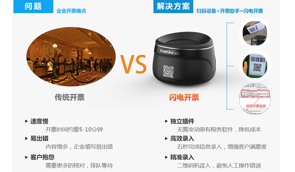 为此,苏州远景达特别推出闪电开票神器!内嵌国际二维条码识读引擎,软硬设备的高度结合,采用先进的智能图像算法、芯片设计与制造工艺完美融合,可快速识读低亮度及各类贴膜的大数据量屏幕条码。开具发票时,只需将开票二维码放置在上方进行扫描,五秒即可快速开具发票,让开票不再成为难题。